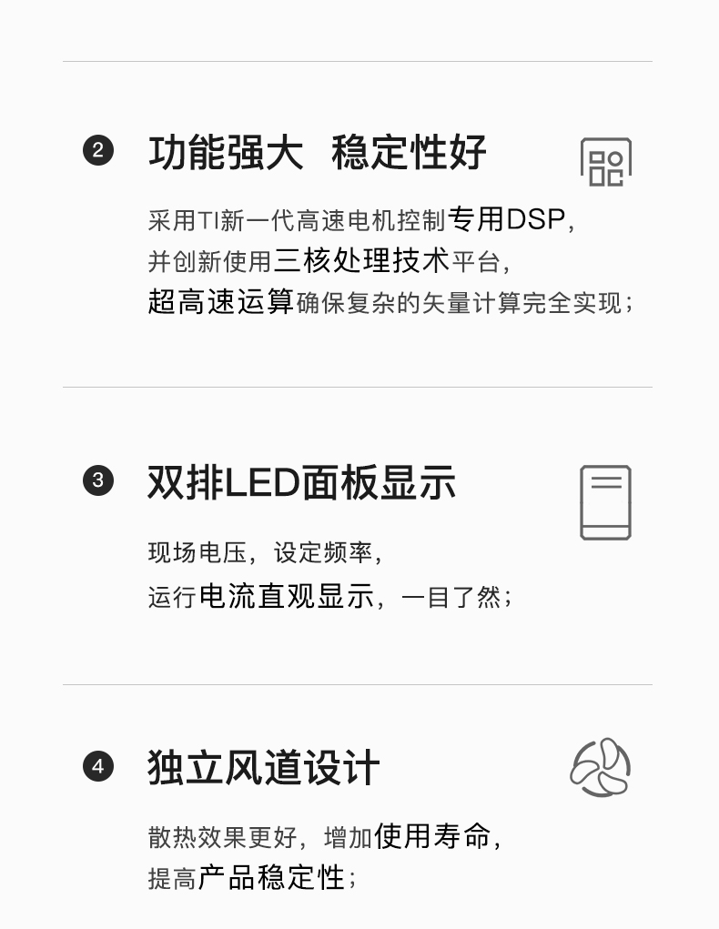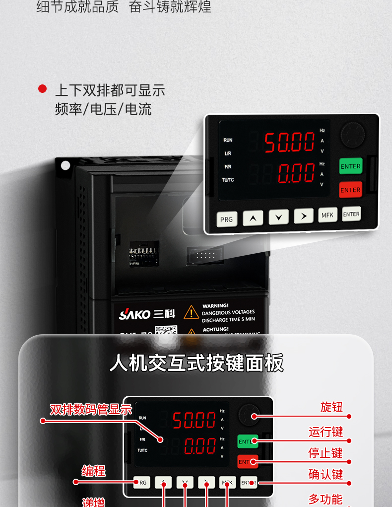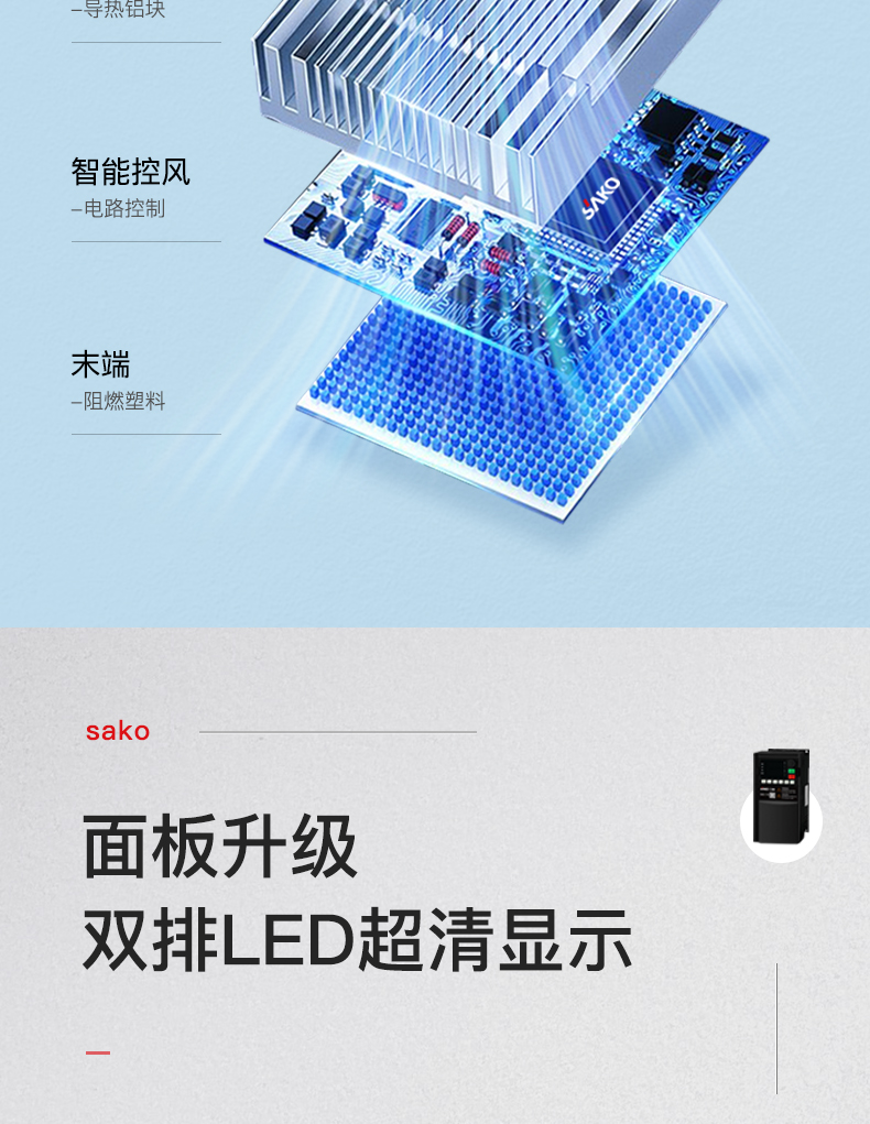 SKII70變頻器新品上市,處處是升級,產(chǎn)品身材更小,功能更強性能穩(wěn)定,雙排LED顯示更直觀,獨立風(fēng)道設(shè)計產(chǎn)品性能更穩(wěn)定??赏饨用姘澹瑢崿F(xiàn)遠程控制,產(chǎn)品外殼采用阻燃材料,耐高溫。