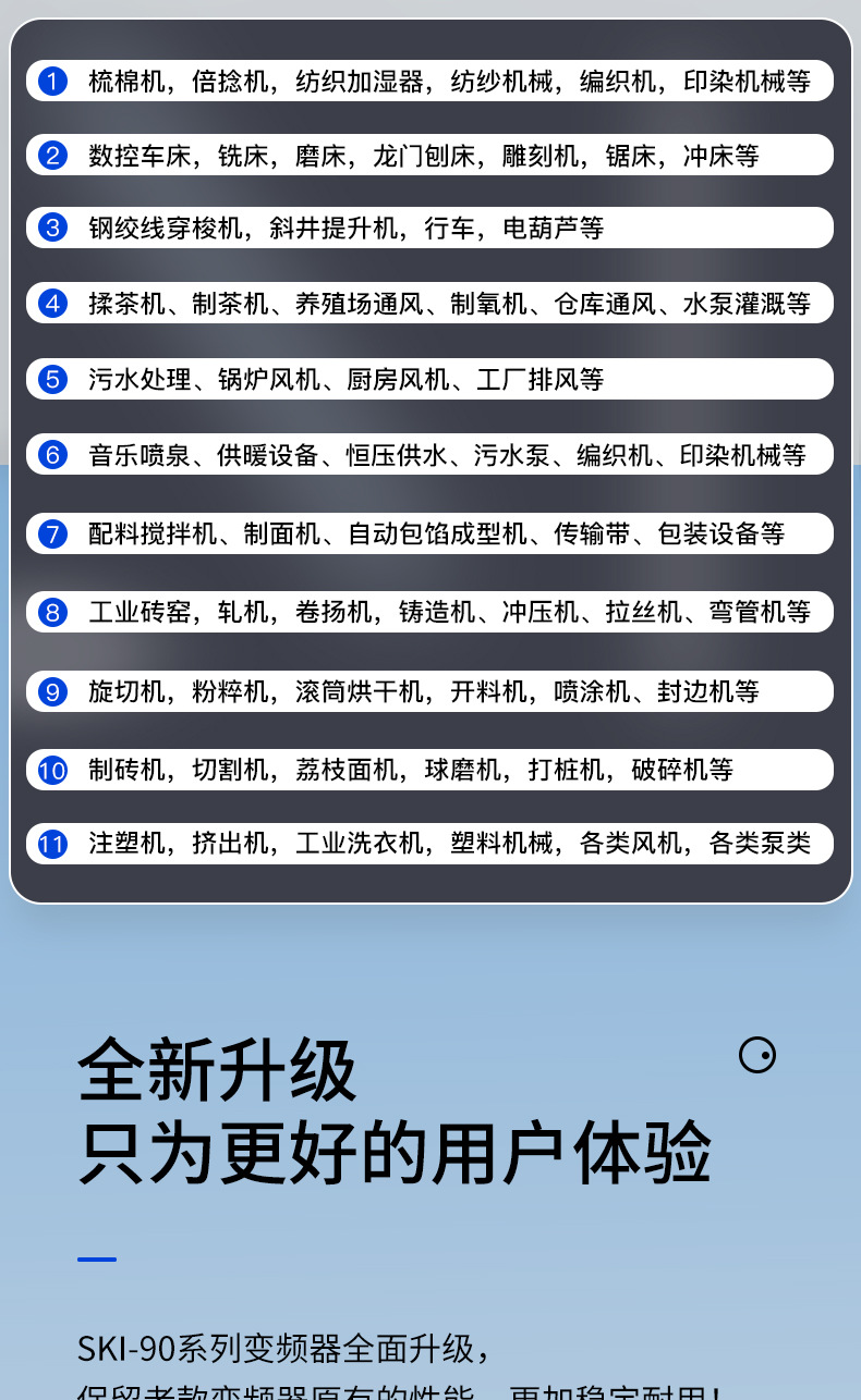 (廣泛應(yīng)用于冶金、鋼鐵、采油、礦山、建材、制藥、化工、造紙、塑膠、機床、紡織化纖、市政供水、暖通供暖等所有使用三相異步電機的行業(yè));