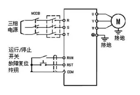 變頻器只要根據(jù)RUN接線端子給予上拉電阻,變頻器就可以啟動(dòng),開關(guān)斷裂時(shí),與RUN接線端子變成低頻相同,變頻器停止運(yùn)轉(zhuǎn)。