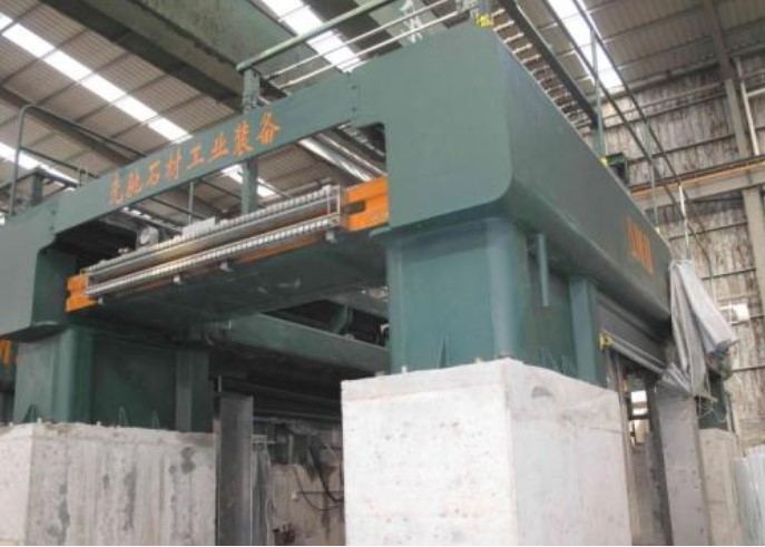 排鋸是將一組(幾十到上百根不等)排鋸裝在往復式鋸框上,由馬達帶動大飛輪上的曲柄連桿機構(gòu)驅(qū)動鋸框做往復運動,為了達到切割石材的目的,通過升降傳動機構(gòu)連續(xù)向下作進給運動對鋸片施壓,使金剛石鋸片對石材做相對切割運動。鋸架往復速度可達92m/min,主移動導軌設計剛性高、導向精度高、鋸縫小,是目前排鋸主流產(chǎn)品的設計標準。
