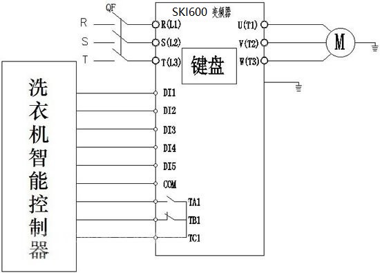 三科11KW通用性變頻器,運用DI3,DI4,COM收到點動交流接觸器上邊的延時繼電器,處理點動正、翻轉(zhuǎn);將DI1,DI2,COM連接此時間控制器,處理正反轉(zhuǎn)操縱。此設備必須點動正反轉(zhuǎn)及全自動正反轉(zhuǎn)運作操縱。點動加減速時間為0.6秒,頻率為50HZ。因當場規(guī)定,加減速時間很短,當正反轉(zhuǎn)轉(zhuǎn)換時意見反饋制動電阻的動能非常大,外接制動電阻為50歐1000W。因此 歐科變頻器在工業(yè)生產(chǎn)洗衣機上的運用,能使其做到全自動化技術的運作。