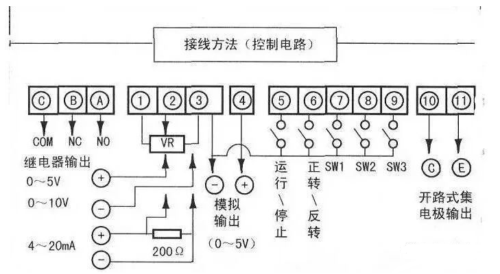 2、由于控制電路的頻率輸入信號是微小電流,所以在接點輸入的場合,為了防止接觸不良,微小信號接點應(yīng)使用兩個并聯(lián)的節(jié)點或使用雙生接點。