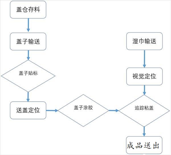 圖3全自動濕巾貼蓋機(jī)粘蓋工藝流程圖