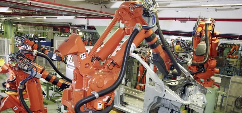 裝卸工業(yè)機(jī)器人包括:工業(yè)機(jī)器人、控制柜、示教裝置和末端執(zhí)行器。工業(yè)機(jī)器人和末端執(zhí)行器一般是根據(jù)自動(dòng)化生產(chǎn)線中產(chǎn)品和設(shè)備的布局來(lái)選擇的。比如數(shù)控機(jī)床加工的工件是重量≤1Kg,設(shè)備間距≤1300的圓柱體。機(jī)床上下料機(jī)器人末端執(zhí)行器采用氣動(dòng)機(jī)械式雙指單關(guān)節(jié)手爪夾持工件,控制手爪動(dòng)作的電磁閥安裝在機(jī)器人本體上。