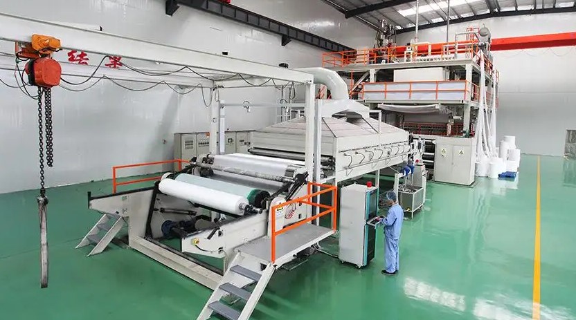 首先將無(wú)紡布的原料高分子聚丙烯放入螺桿擠出機(jī)中加熱熔融,將熔融的聚丙烯輸送到過(guò)濾器中過(guò)濾雜質(zhì),然后將熔體通過(guò)計(jì)量泵定量輸送到噴絲板組件中。此時(shí)噴絲孔兩側(cè)的熱空氣會(huì)以接近音速的速度吹動(dòng)流動(dòng)的熔體,使其迅速變細(xì),并在下落過(guò)程中被兩側(cè)的牽引空氣冷卻凝固成超細(xì)纖維,最后凝聚在一個(gè)輥筒上。通過(guò)自粘合成布,這樣生產(chǎn)出來(lái)的布不是用紗線織成網(wǎng),而是直接省略了加工成線的步驟,纖維粘合成布,所以稱為無(wú)紡布。在從噴絲板擠出熔體的過(guò)程中,主要的電機(jī)設(shè)備是單螺桿擠出機(jī)。