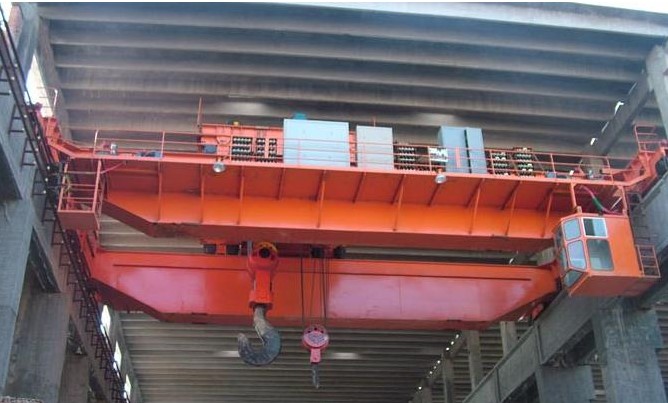 橋式起重機(jī)我們通常將其簡(jiǎn)稱(chēng)為行車(chē)或天車(chē),這是一種將橋架在高架軌道上運(yùn)行的橋架型起重機(jī)。其運(yùn)行的原理是通過(guò)橋架沿鋪設(shè)在兩側(cè)高架上,然后以軌道縱向運(yùn)行的方式工作,而當(dāng)起重小車(chē)沿鋪設(shè)在橋架上的軌道橫向運(yùn)行時(shí),則構(gòu)成一個(gè)矩形的工作范圍,這樣就可以充分利用的橋架下方空間來(lái)吊運(yùn)物料,可以有效避免地面設(shè)備造成阻礙和干擾。目前橋式起重機(jī)已廣泛的應(yīng)用在室內(nèi)外的倉(cāng)庫(kù)、廠房、碼頭和露天貯料場(chǎng)等處中。橋式起重機(jī)通常是由起重小車(chē)、橋架運(yùn)行機(jī)構(gòu)、橋架金屬結(jié)構(gòu)組成。其中起重小車(chē)部分又由起升機(jī)構(gòu)、小車(chē)運(yùn)行機(jī)構(gòu)和小車(chē)架三部分組成。