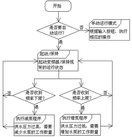 手動模式主要用于解決系統(tǒng)錯誤或設(shè)備問題。另外,為了防止PLC故障造成系統(tǒng)停機,手動控制沒有進入PLC程序,這樣更有利于系統(tǒng)的升溫。在自動運行模式下,如果PLC接收到頻率上限信號,將執(zhí)行增泵程序,增加水泵的工作量。如果PLC接收到頻率下限信號,將執(zhí)行減泵程序,減少水泵的工作量。如果您沒有收到信號,您將保持當前的操作狀態(tài)。
