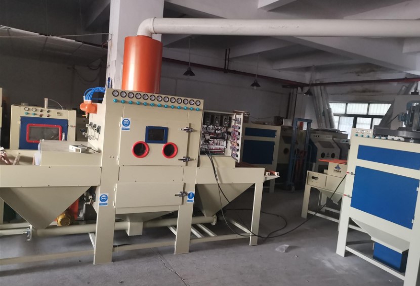 異型打磨噴砂機(jī)是一種利用噴槍吹出的高速運(yùn)動的顆粒物體,通過氣流的高速動能,在噴槍內(nèi)部形成負(fù)壓,將磨料通過輸送管吸入噴砂槍,再通過噴嘴噴出,達(dá)到所期望的加工效果。該設(shè)備的整體工藝流程如下:板件輸送、管道吹塵、噴槍組動作、除塵輥去塵、砂料調(diào)整。
