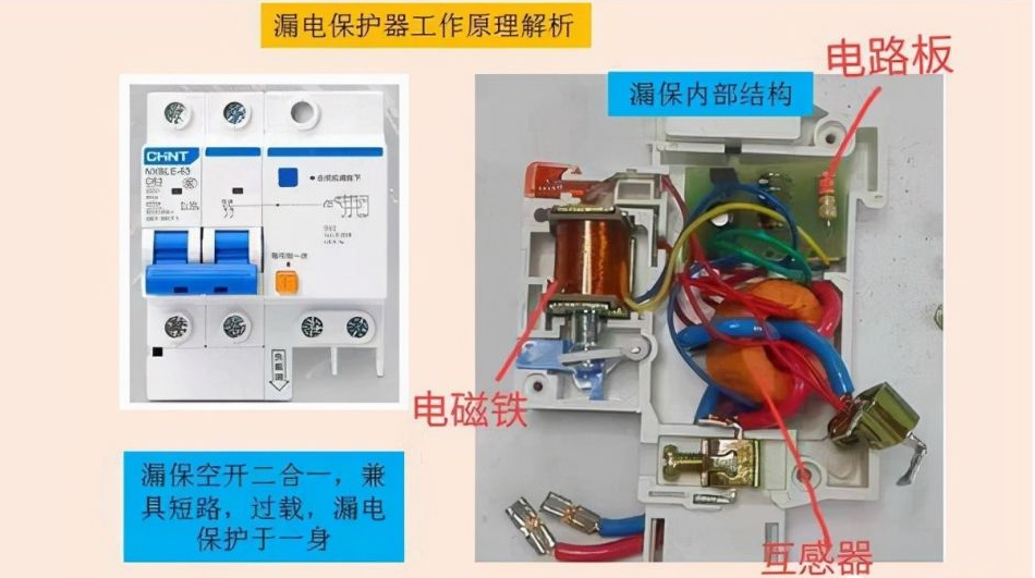 在線路上安裝漏電保護(hù)器,初級線圈與電力網(wǎng)線路連接,次級線圈與漏電保護(hù)器的脫扣器連接。