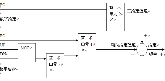 PG·MOP須先在算術(shù)單元中作乘法運算后再作為輔助給定。由于MOP的范圍為不可調(diào)的0~100%,需在算術(shù)單元中用乘法運算將其限制在0~10%之內(nèi)。具體框圖如圖5: