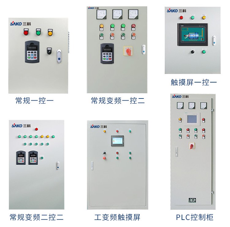 控制柜(變頻柜)主要用于高層建筑無塔供水、消防深井泵恒壓供水等需要根據(jù)實時用水情況閉環(huán)調(diào)節(jié)水泵轉(zhuǎn)速的場合。閉環(huán)控制系統(tǒng)由變頻器、智能控制器、壓力傳感器和水泵組成。