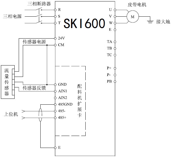 1. 系統(tǒng)生產(chǎn)所需各物料的流量由上位機(微機控制系統(tǒng))給出,并通過RS485網(wǎng)絡(luò)傳輸至SKI600;