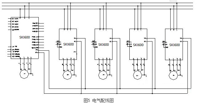 2、SKI600擴(kuò)展卡控制系統(tǒng)方案,由觸摸屏、變頻器、調(diào)速模塊、接觸器和空氣開關(guān)組成: